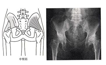 「変形性股関節症は、生まれつきの股関節脱臼や外傷などが原因で股関節の関節が狭くなり、股関節痛を起こす病気です。ただし、40%は中臀筋、小臀筋の筋肉の硬結が原因になることもあります」