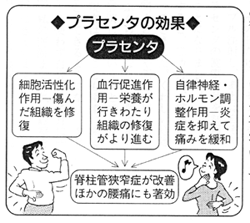 この女性が私の医院へきたのは、昨年12月。やはり『わかさ』の記事を見たのがきっかけでした。神経ブロックで治療をしても腰痛が治らなかったから、1度プラセンタを試してみたいということでした。そして、1週間に1回2アンプルずつ、プラセンタの注射を受けるようになったのです。